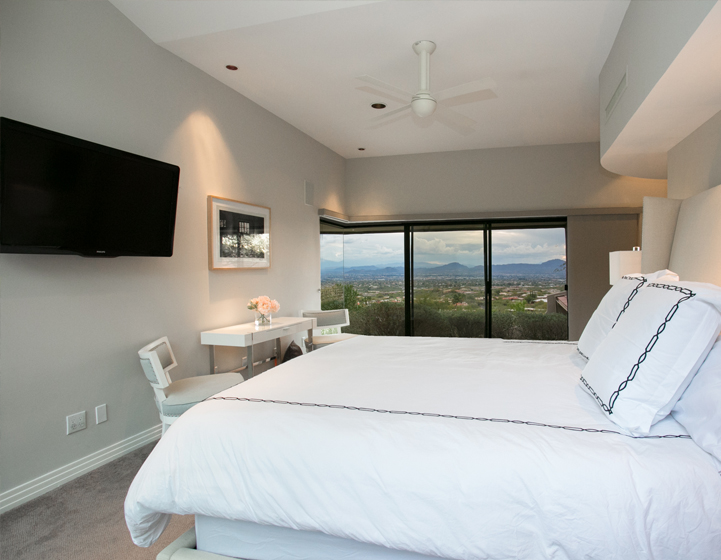 This bedroom shares a bathroom with Bedroom Three. The floor to ceiling glass windows will reveal an excellent city view to the south, and to the north the mountain.